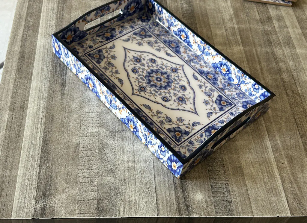 Bring elegance to your everyday serving with our handcrafted Blue Pottery MDF Tray.